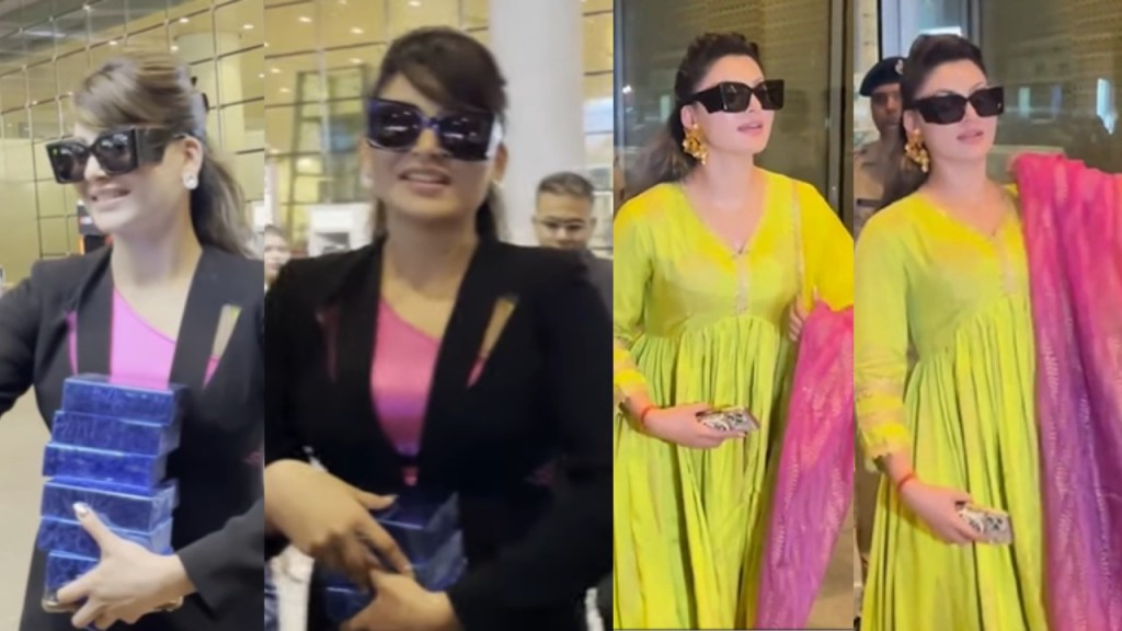 Just the day before her departure, Urvashi Rautela was also spotted at the airport, but this time arriving back from her film shoot. In a heartwarming gesture, she distributed Diwali gifts to the paparazzi present, spreading joy and festive cheer. This thoughtful act demonstrated Urvashi’s warmth and appreciation for the media fraternity, making her not only a style icon but also a compassionate individual.
