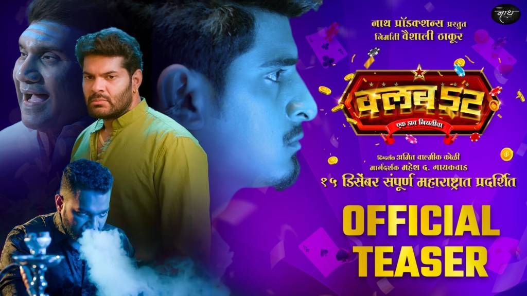 दमदार स्टारकास्ट असलेल्या “क्लब 52” या चित्रपटाचा टीजर नुकताच सोशल मीडियावर लाँच करण्यात आला आहे. नाथ प्रॉडक्शन्स प्रस्तुत “क्लब 52” या चित्रपटाची निर्मिती आणि प्रस्तुती वैशाली ठाकूर यांनी केली आहे. अमित कोळी दिग्दर्शित हा चित्रपट अॅक्शनपॅक्ड असून, हार्दिक जोशी धमाकेदार भूमिकेत दिसणार आहे. येत्या १५ डिसेंबरला हा चित्रपट संपूर्ण महाराष्ट्रात प्रदर्शित होणार आहे.