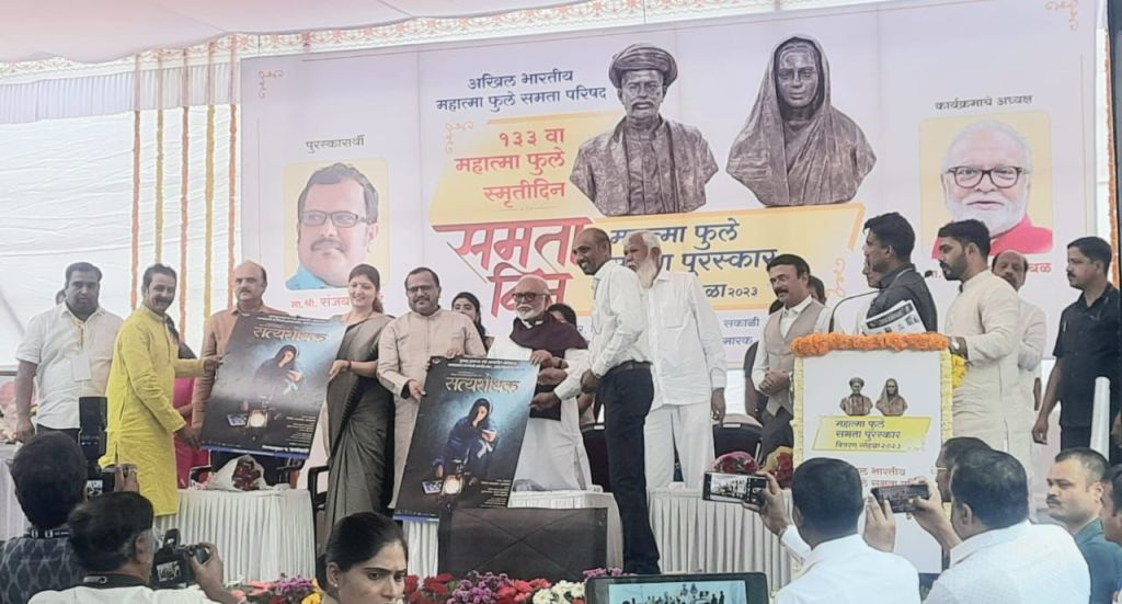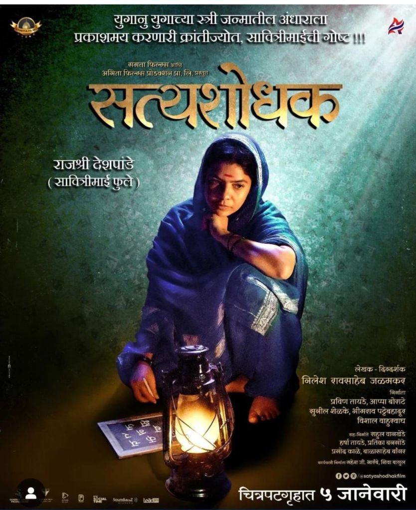 आपल्या पतीच्या खांद्याला खांदा देत, समाजाचा रोष पत्करून फक्त महिलांच्या सबलीकरणाचा विचार करणाऱ्या आणि ते प्रत्यक्षात आणणाऱ्या सावित्रीबाई फुले यांचा जीवनप्रवास आता मोठ्या पडद्यावर झळकणार आहे. महात्मा ज्योतिराव फुले यांच्या संघर्षमयी जीवनावर आधारित ‘सत्यशोधक’ हा चित्रपट लवकरच प्रदर्शित होणार आहे. याच पार्श्वभूमीवर या चित्रपटातील सावित्रीमाईंच्या भूमिकेतील राजश्री देशपांडे यांचे पोस्टर म्हणजेच फर्स्ट लूक प्रकाशित करण्यात आला आहे. अन्न व नागरी पुरवठा मंत्री छगन भुजबळ यांच्या हस्ते हे पोस्टर प्रकाशित करण्यात आले.