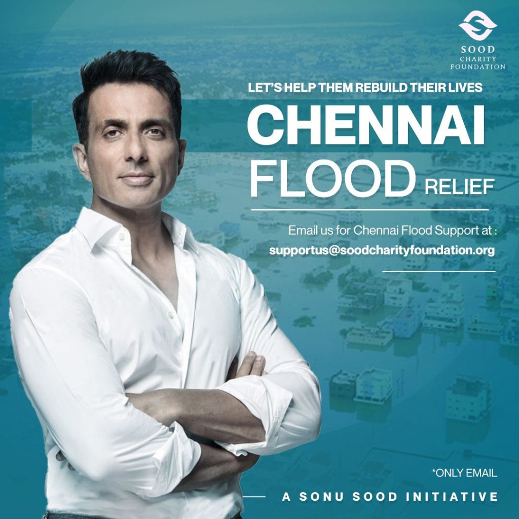 एक्टर सोनू सूद एक बार फिर आशा की किरण बनकर बाढ़ पीड़ितों की मदद के लिए चेन्नई फ्लड रिलीफ की सहायता की है। उनके कोशिश सिर्फ चक्रवात मिचौंग से प्रभावित बाढ़ पीड़ितों को सहायता प्रदान करना नहीं है बल्कि बेहतर भविष्य के लिए आशा की किरण भी प्रदान करना है। सोनू सूद अपने फाउंडेशन द सोनू सूद फाउंडेशन के माध्यम से समाज पर सकारात्मक प्रभाव डालने के लिए प्रतिबद्ध हैं, जो सामाजिक कल्याण के लिए समर्पित है।