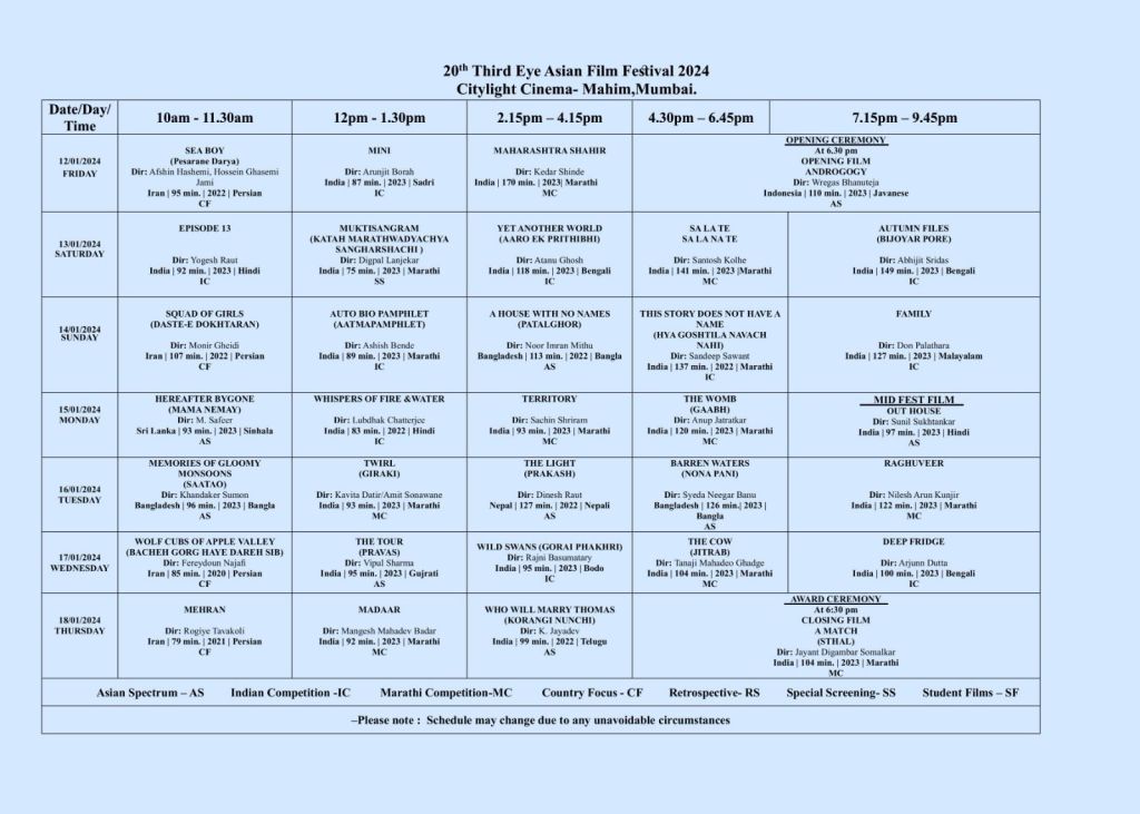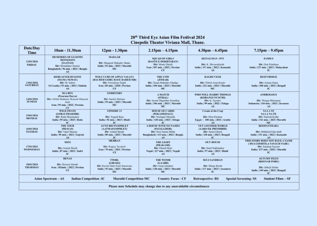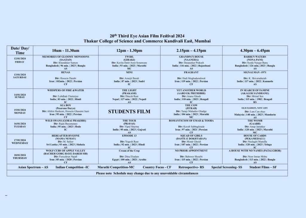 २० व्या ‘थर्ड आय आशियाई चित्रपट महोत्सवा’ ची प्रतिनिधी नोंदणी ५ जानेवारीपासून सुरू झाली असून http://www.thirdeyeasianfilmfestival.com या वेबसाइटवर ऑनलाईन नोंदणी करता येईल. तसेच सिटीलाइट सिनेमा, माहिम, कांदिवली येथील ठाकूर कॉलेज ऑफ कॉमर्स अँड सायन्स आणि पीव्हीआर सिनेपोलिस, ठाणे यथे सकाळी ११.०० ते सायंकाळी ७.००वा. प्रत्यक्ष जाऊन नोंदणी करता येऊ शकते. यासाठी चे शुल्क पुढीलप्रमाणे आहे.