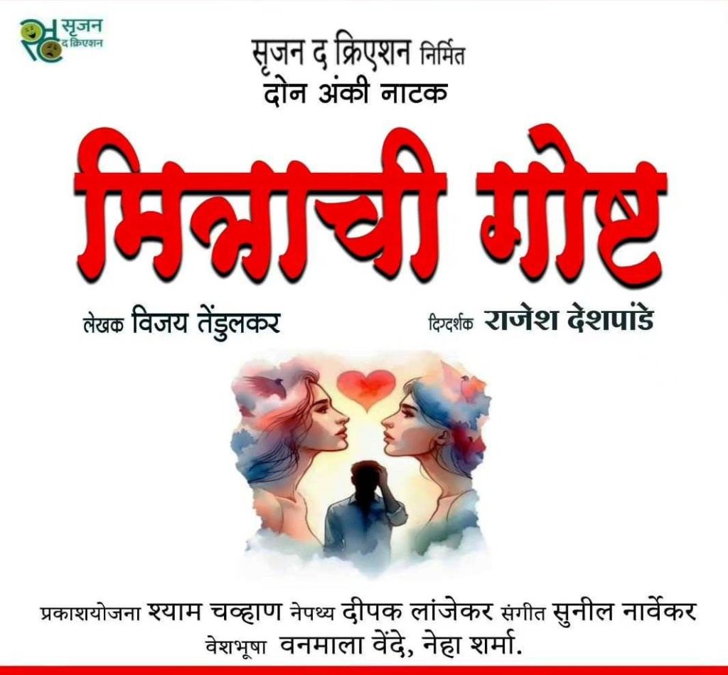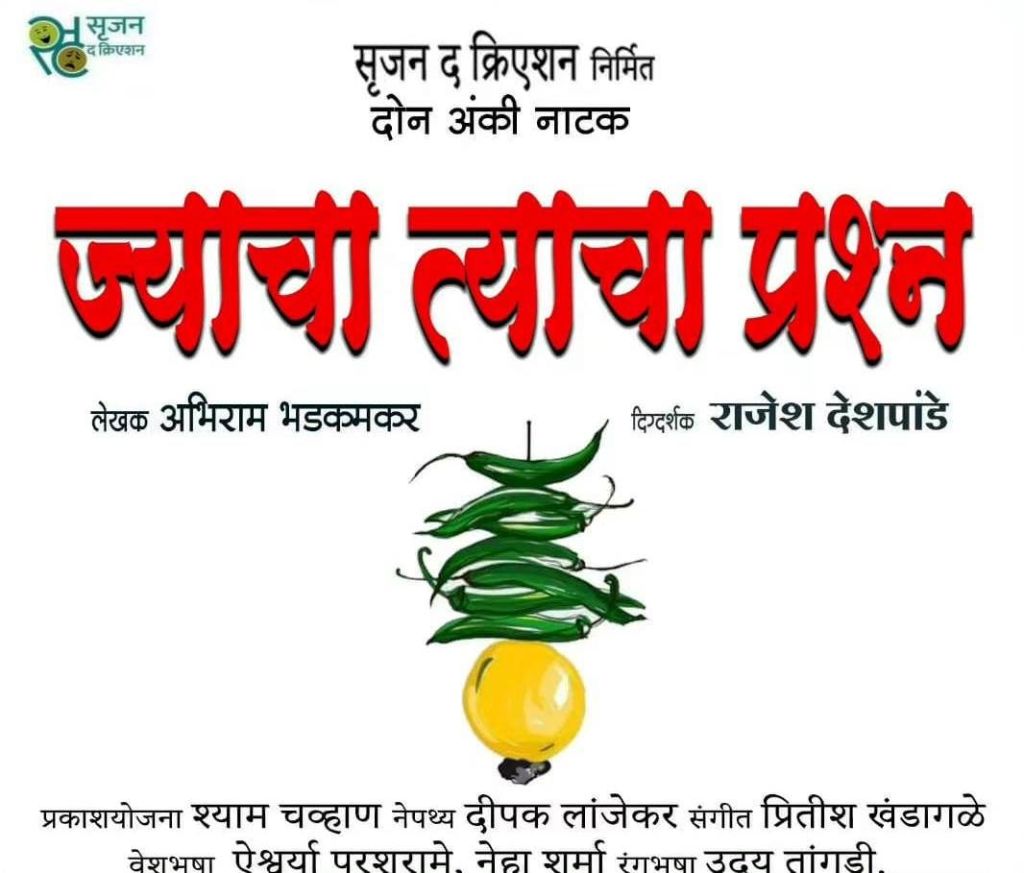 नव्या कलाकारांना घडवत त्यांना उत्तम व्यासपीठ मिळावे या उद्देशाने ‘सृजन’ ने एक मिशन सुरू केलं. ‘सृजन द क्रियेशन’ ही फक्त कार्यशाळा नसून एक संस्था आहे.आणि एक सृजनशील संवेदनशील माणसांचे एक जागतिक कुटुंब आहे. ‘आपली स्पर्धा स्वतःशीच करावी’ हा मंत्र प्रत्येकाच्या मनावर बिंबवत आजवर वेगवेगळया उपक्रमांच्या माध्यमातून सृजन द क्रियेशनच्या कलाकारांनी अनेक स्पर्धांमध्ये जवळपास ३० च्या वर एकांकिका, अनेक दिर्घ अंक, ४० एक शॉर्टफिल्म केल्या आणि पुरस्कार पण मिळवले. त्यातल्याच विजय तेंडुलकर लिखित ‘मित्राची गोष्ट’ आणि अभिराम भडकमकर लिखित ‘ज्याचा त्याचा प्रश्न’ या दोन नाटकांचे प्रयोग श्री शिवाजी मंदिर येथे रंगणार आहेत.