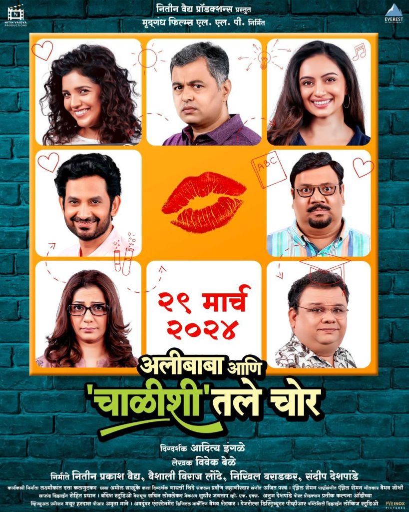 नितीन वैद्य प्रॉडक्शन्स प्रस्तुत आणि मृदगंध फिल्म्स एल. एल. पी. निर्मित ‘अलीबाबा आणि ‘चाळीशी’तले चोर’ हा मल्टिस्टारर चित्रपट येत्या २९ मार्चला प्रेक्षकांच्या भेटीला येणार असून आता चित्रपटाचे पहिले पोस्टर समोर आले आहे. पोस्टरधील कलाकारांच्या चेहऱ्यावरील चित्रविचित्र, प्रश्नार्थक हावभाव पाहून काहीतरी गडबड असल्याचा अंदाज येतोय. त्यातच लिपस्टिकचे निशाण ही उत्सुकता अधिक वाढवतेय. आता यामागचे गुपित मात्र चित्रपट आल्यावरच उलगडणार आहे. यात मु्क्ता बर्वे, सुबोध भावे, श्रृती मराठे, उमेश कामत, आनंद इंगळे, मधुरा वेलणकर आणि आनंद इंगळे यांच्या प्रमुख भूमिका असून या सगळ्या मातब्बर कलाकारांना एकत्र पडद्यावर पाहाणे, म्हणजे प्रेक्षकांसाठी पर्वणीच ठरणार आहे.