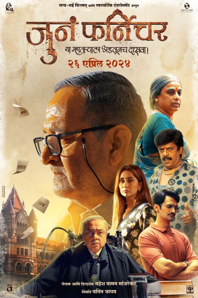 सत्य – सई फिल्म्स आणि स्कायलिंक एंटरटेनमेंट प्रस्तुत ‘जुनं फर्निचर’ हा चित्रपट येत्या २६ एप्रिल रोजी चित्रपटगृहांत प्रदर्शित होणार आहे. काही दिवसांपूर्वीच या चित्रपटाचा टिझर लाँच सोहळा दिमाखात पार पडला. टीझरमधील महेश मांजरेकर यांच्या करारी व्यक्तिरेखेची झलक सर्वांनीच पाहिली. आता या चित्रपटातील इतर कलाकारही समोर आले आहेत. नुकतेच या चित्रपटाचे पोस्टर सोशल मीडियावर झळकले असून यात महेश मांजरेकर यांच्यासोबत मेधा मांजरेकर, उपेंद्र लिमये, भूषण प्रधान, अनुषा दांडेकर आणि सचिन खेडेकर दिसत आहेत. पोस्टरमध्ये न्यायालय, न्यायधीश आणि काही कागदपत्रे दिसत आहेत, ज्यावर न्याय, हक्क, कायदा लिहिलेले आहे. त्यामुळे आता ही कोणती लढाई लढली जाणार आहे, याचे उत्तर प्रेक्षकांना चित्रपट पाहूनच मिळणार आहे.