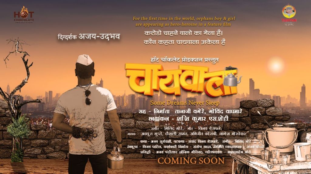 ‘चायवाला’च्या रूपात एक धम्माल विनोदी मराठी सिनेमा प्रेक्षकांच्या भेटीला येणार असून, हा सिनेमा सामाजिक संदेशही देण्याचं काम करणार आहे. हॅाट चॅाकलेट प्रोडक्शनची प्रस्तुती असलेल्या या चित्रपटाचे सहनिर्मिते तानाजी वगरे आणि गोविंद वाघमारे आहेत. अजय-उद्भव या जोडगोळीकडे ‘चायवाला’च्या दिग्दर्शनाची जबाबदारी सोपवण्यात आली आहे. ‘करोड़ों चाहने वालों का मेला है, कौन कहता चायवाला अकेला है…’ हे चित्रपटाच्या पोस्टरवरील वाक्य बरंच काही सांगणारं आहे. सोशल मीडियामुळे आज चायवाल्यांपासून वडापाववाल्यांपर्यंत सर्वच जण फेमस झाले आहेत. यात दिल्लीतील डॅाली चायवाल्याची सोशल मीडियावर जबरदस्त चर्चा आहे. त्या पार्श्वभूमीवर ‘चायवाला’ चित्रपटातील नायक नेमका कसा असणार आहे याबाबत उत्सुकता वाढली आहे. ‘सम ड्रीम्स नेव्हर स्लीप’ ही टॅगलाईनही खूप मार्मिक आहे. या चित्रपटाद्वारे प्रथमच एक अनाथ मुलगा आणि मुलगी रुपेरी पडद्यावर नायक-नायिकेच्या रूपात दिसणार आहेत. डोक्यावर पांढरी टोपी, बनियान आणि पाठीमागे चुलबुल पांडे स्टाईलमध्ये अडकवलेला गॅागल असा चायवालाचा पाठमोरा लुक पोस्टरमध्ये रिलीज करण्यात आला आहे. हा चायवाला नेमकी काय धम्माल करतो हे चित्रपटात पाहाणं उत्सुकतेचं ठरणार आहे.