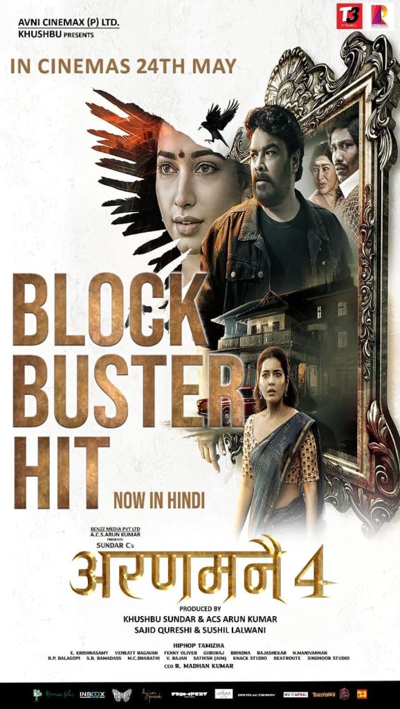 मागील काही दिवसांपासून ‘अरनमानाई ४’ या तमिळ चित्रपटाने दक्षिणेकडे बॅाक्स ऑफीसवर अक्षरश: धुमाकूळ घालत रसिकांवर मोहिनी घातली आहे. ३ मे रोजी प्रीमियर झालेल्या या चित्रपटाला प्रेक्षकांचे भरभरून प्रेम मिळत आहे. ‘अरनमानाई ४’ जास्तीत जास्त प्रेक्षकांपर्यंत पोहोचावा या उद्देशाने हा चित्रपट हिंदीतही डब करण्यात आला आहे. २४ मे रोजी ‘अरनमानाई ४’ हिंदीमध्येही रिलीज होणार आहे. या हॉरर-कॉमेडी चित्रपटाने प्रेक्षकांना थरारक अनुभव देत मंत्रमुग्ध केले असून, आता हा चित्रपट हिंदी भाषिक प्रेक्षक वर्गापर्यंत पोहोचण्यास सज्ज झाला आहे.