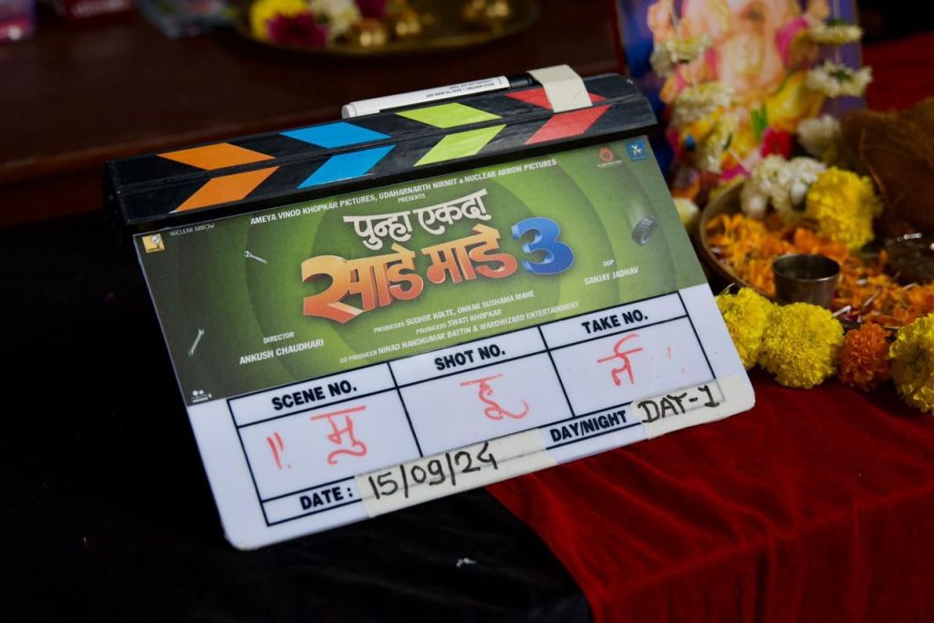 काही दिवसांपूर्वी अंकुश चौधरी दिग्दर्शित ‘पुन्हा एकदा साडे माडे तीन’ या चित्रपटाची सोशल मीडियावर घोषणा करण्यात आली होती. सतरा वर्षांपूर्वी प्रदर्शित झालेल्या या चित्रपटातील कुरळे ब्रदर्सने अवघ्या महाराष्ट्राला आपलेसे केले. आता पुन्हा एकदा हे कुरळे ब्रदर्स धमाका करायला येणार असून नुकताच ‘पुन्हा एकदा साडे माडे तीन’च्या चित्रीकरणाचा शुभारंभ झाला आहे.