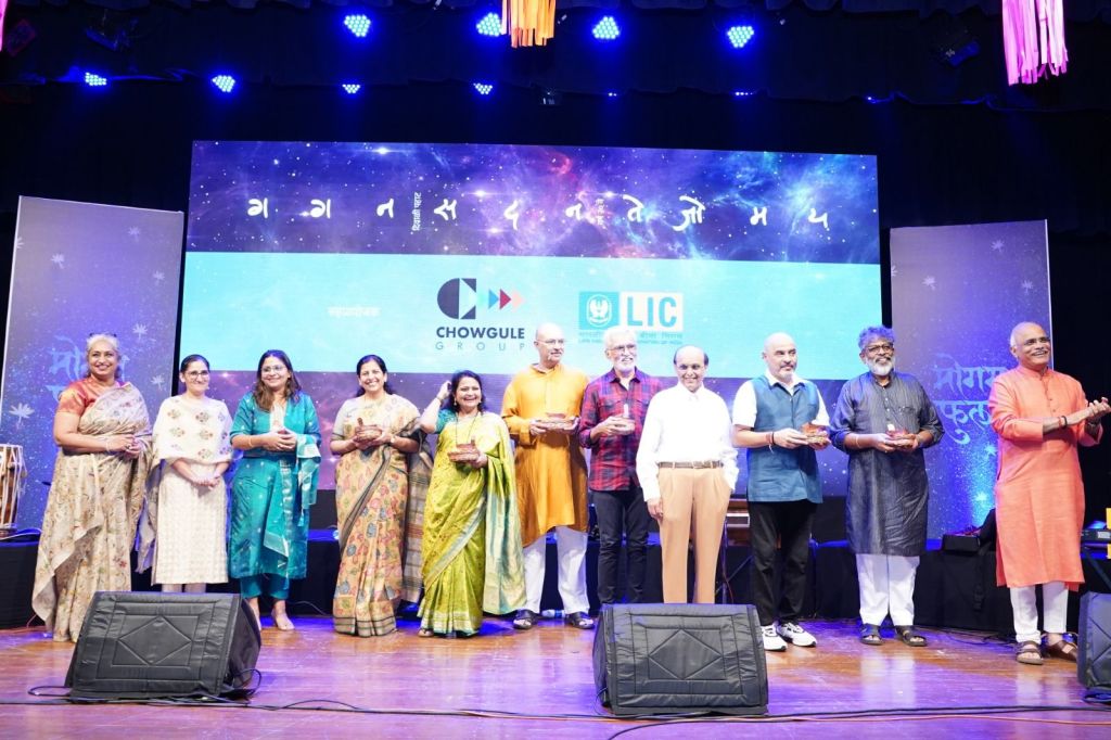 ‘गगन सदन तेजोमय’च्या ‘मोगरा फुलला’ या विशेष मैफिलीत श्रीरंग भावे, शाल्मली सुखटणकर यांनी त्यांच्या मधुर आवाजात ज्ञानेश्वरांच्या रचना सादर केल्या. निलेश परब, प्रसाद पाध्ये, शशांक हाडकर, दर्शना जोग, अमोघ दांडेकर, आणि अभय ओक या ख्यातनाम कलाकारांनी वाद्यांची साथ दिली. या मैफिलीत विदुषी धनश्री लेले यांनी अत्यंत सुरेख निरूपणाद्वारे कार्यक्रमाच्या प्रत्येक क्षणाला सुगंधित बनवले. संत ज्ञानेश्वरांच्या गूढ आणि आध्यात्मिक विचारांनी ओतप्रोत भरलेल्या या अभंगांचा अनुभव त्यांनी आपल्या खास शैलीतून उपस्थितांना दिला. ‘ॲड फिज’ची प्रस्तुती असलेल्या या संपूर्ण कार्यक्रमाची निर्मिती विनोद पवार तर संयोजन महेंद्र पवार यांचे होते.