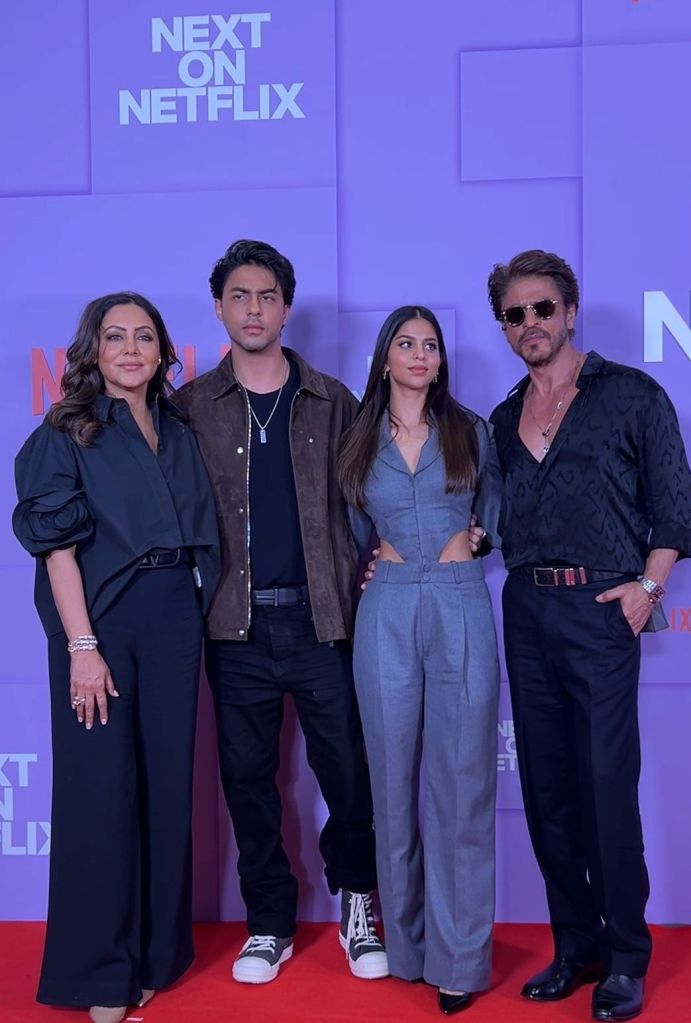 Shah Rukh Khan took the global stage at the Next on Netflix event with a grand revelation—Aryan Khan’s debut Netflix series, ‘The BADS of Bollywood’.