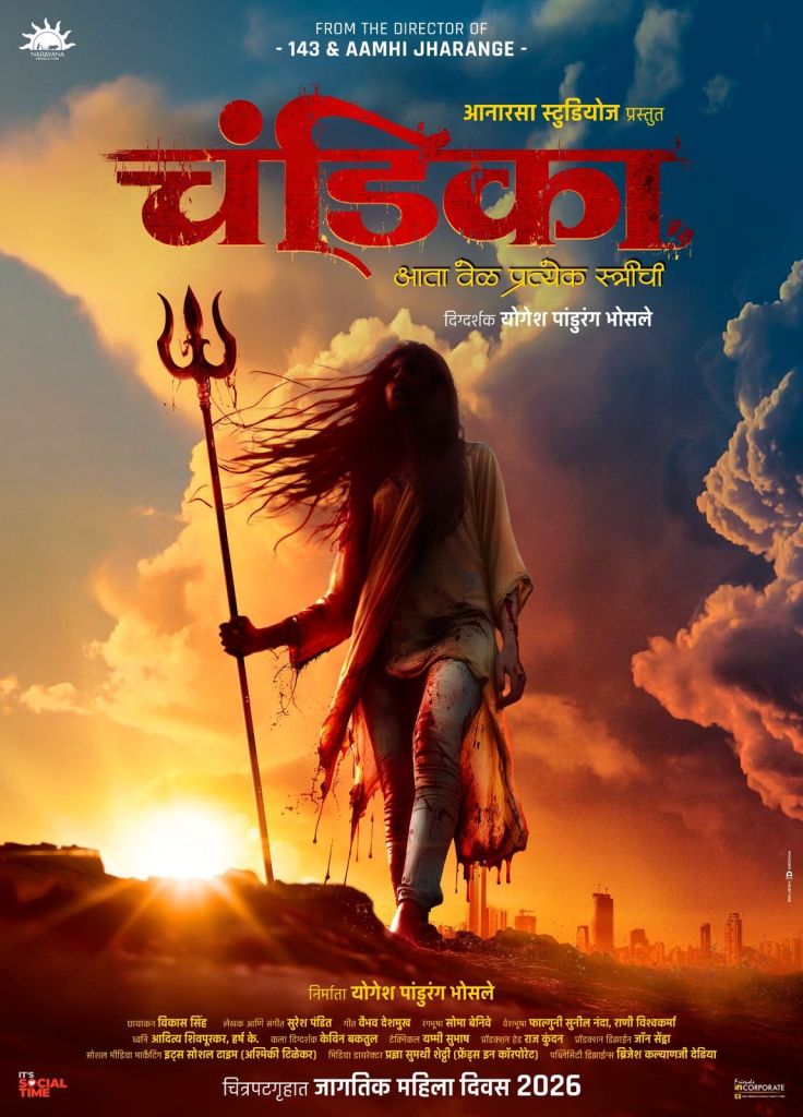 आनारसा स्टुडिओज प्रस्तुत, योगेश पांडुरंग भोसले दिग्दर्शित आणि निर्मित ‘चंडिका’ हा चित्रपट लवकरच प्रेक्षकांच्या भेटीला येत आहे. विशेष म्हणजे या सिनेमाचा पहिला पोस्टर आज जागतिक महिला दिनानिमित्त प्रदर्शित करण्यात आला आहे.