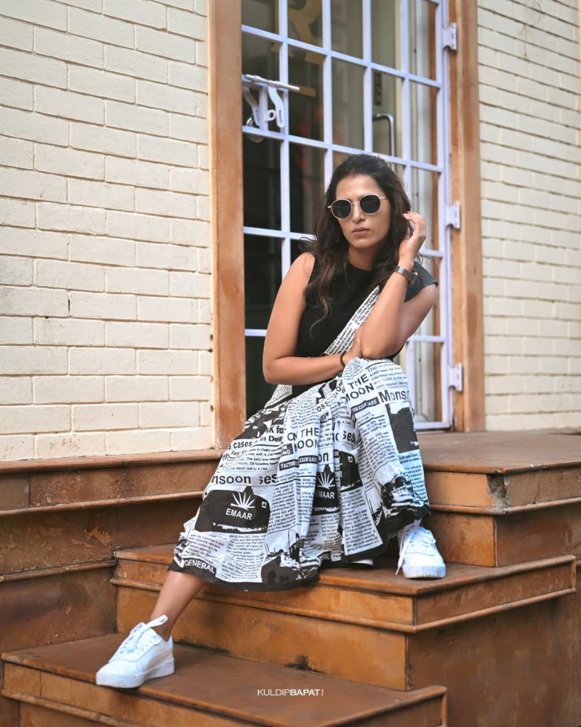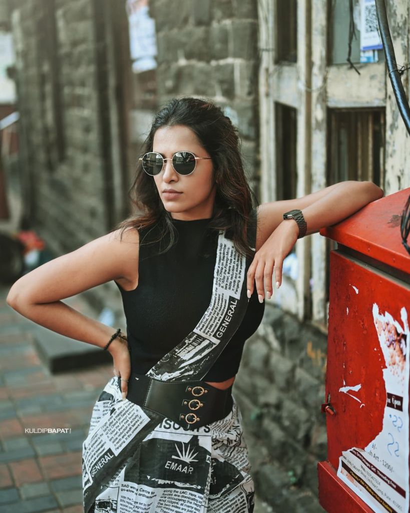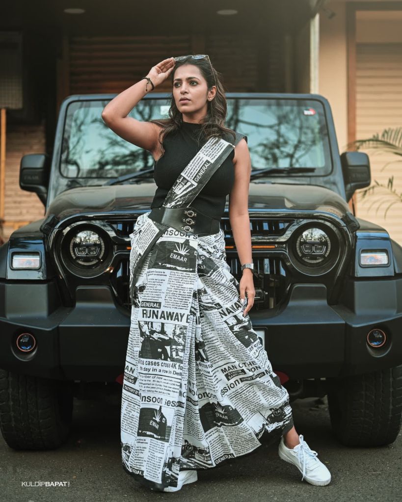 न्यूजपेपर प्रिंट साडी परिधान करत अश्विनीने आपलं सौंदर्य एका वेगळ्याच शैलीत खुलवलं आहे. हे फोटोशूट केवळ ग्लॅमरस नाही, तर एक प्रकारे फॅशन स्टेटमेंटही आहे. अशा हटके स्टाईलमध्ये फार कमी कलाकार दिसतात. अश्विनीने या लूकमध्ये स्वतःची एक सेन्सेशनल ओळख तयार केली आहे.