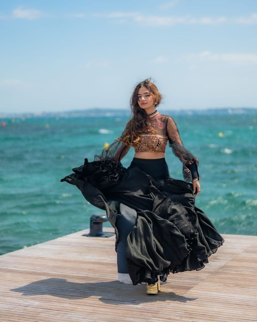 भारतीय यंग आयकॉन अनुष्का सेन पुन्हा एकदा आंतरराष्ट्रीय पातळीवर आपल्या शैली आणि आत्मविश्वासाने चर्चेत आली आहे. 2025 च्या कान्स फिल्म फेस्टिव्हलमध्ये अनुष्काने सादर केलेला दुसरा लूक हा सौंदर्य, एलिगन्स आणि ग्लोबल स्टाईलचा परिपूर्ण मिलाफ ठरला आहे. पहिल्या दिवशीच्या मोहक रेड कार्पेट वॉकनंतर अनुष्काने काळ्या नेटच्या शीर ब्लाउजसह एंटिक ब्रॉन्झ वर्क आणि झगमगत्या एम्ब्रॉयडरीने सजलेला शाही पोशाख परिधान केला. त्यासोबत असलेला जड चंदेरी स्कर्ट तिच्या लूकला एक खास भारतीय पारंपरिकतेची झालर देत होता.