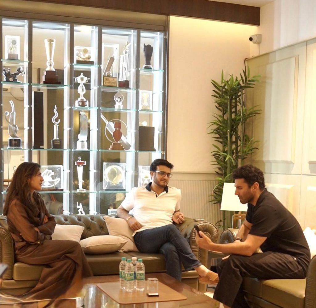 As part of their promotional tour for Metro… In Dino, actors Aditya Roy Kapur and Sara Ali Khan visited Kolkata, where they shared a heartfelt evening with legendary cricketer Sourav Ganguly. Their visit wasn’t just about connecting with fans — it became a memorable moment as the two actors spent quality time at Ganguly’s home.