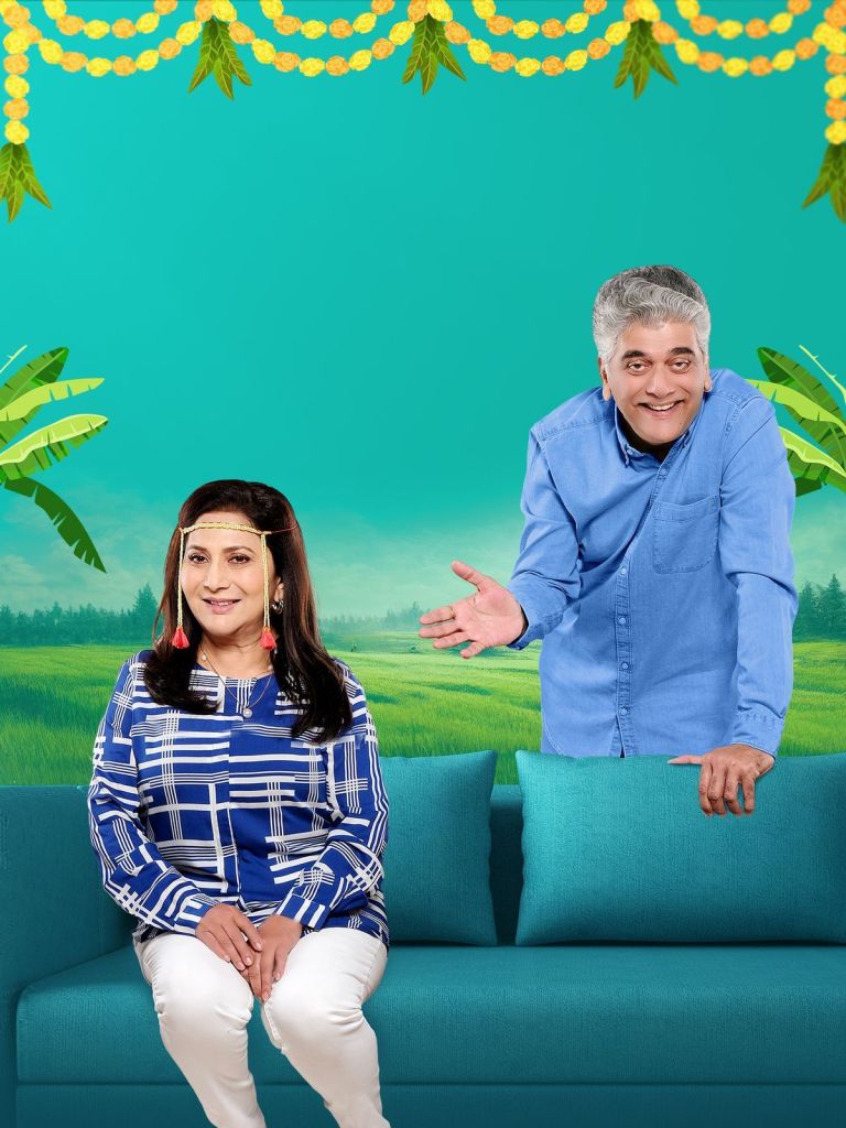 या मोशन पोस्टरमध्ये निवेदिता सराफ सोफ्यावर मुंडावळ्या घालून बसलेल्या दिसतात, पण चेहऱ्यावर नवरीसारखी लाज नाही, तर एक मिश्किल शांतता आहे. त्यांच्या मागे गिरीश ओक खुश चेहऱ्याने हात हलवत काहीतरी सांगत आहेत. हे दृश्य पाहून लगेच लक्षात येतं की हे पारंपरिक नवरा-बायकोसारखं जोडपं नाही, पण त्यांचं नातं मात्र अतिशय घट्ट आहे.