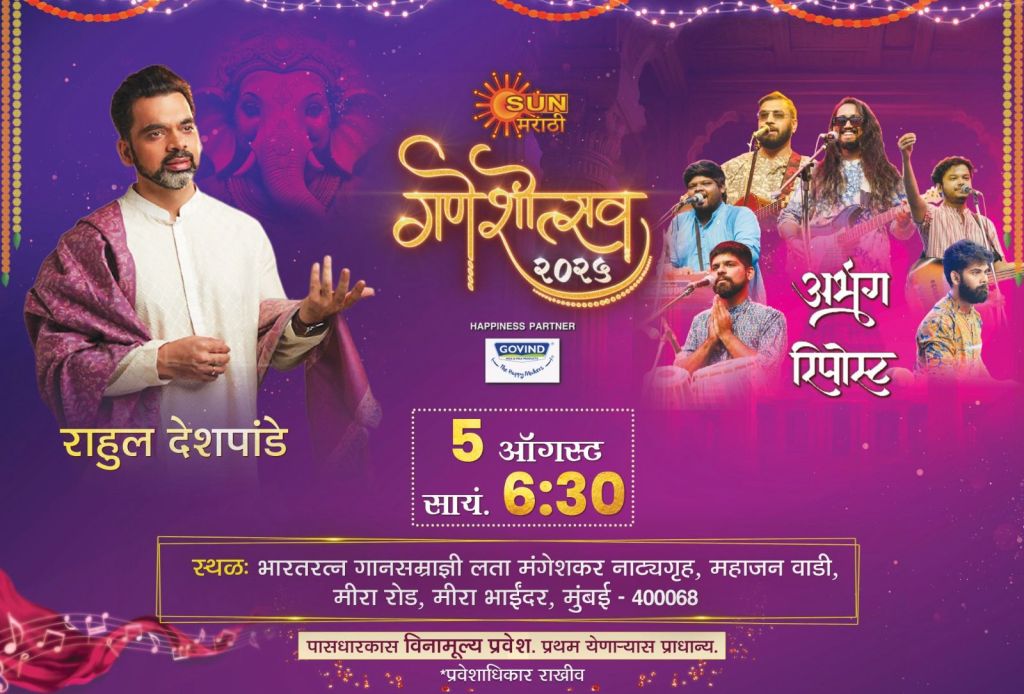 ५ ऑगस्ट रोजी संध्याकाळी ६:३० वाजता, भारतरत्न गानसम्राज्ञी लता मंगेशकर नाट्यगृह, महाजन वाडी, मीरा रोड येथे हा कार्यक्रम पार पडणार आहे. यंदाचा गणेशोत्सव ‘सन मराठी’ कुटुंबासाठी एकत्र येण्याचा, एकत्र साजरा करण्याचा सोहळा ठरणार आहे.