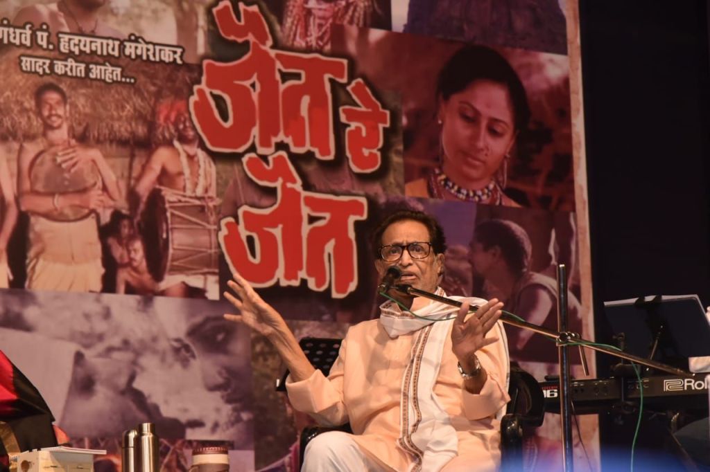 चर्चेनंतर जैत रे जैतमधील गाणी प्रत्यक्ष सादर झाली. रवींद्र साठे यांच्या सुरेल नेतृत्वात मनिषा निश्चल आणि विभावरी आपटे यांनी ‘मी रात टाकली’, ‘जांभुळ पिकल्या झाडाखाली’, ‘आम्ही ठाकर ठाकर’ ही अजरामर गाणी सादर केली. संपूर्ण सभागृह त्या सूरांनी भारून गेलं.